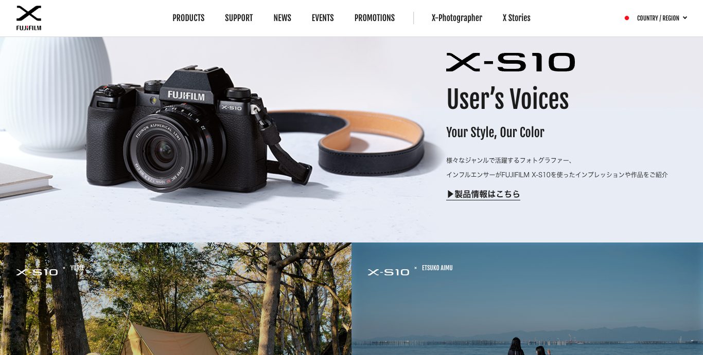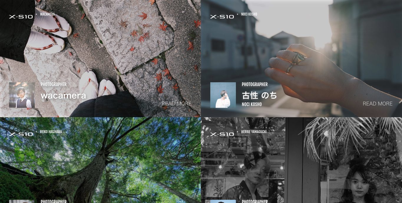 様々なジャンルで活躍するフォトグラファー、インフルエンサーがFUJIFILM X-S10を使ったインプレッションや作品をご紹介するランディングページを作成
