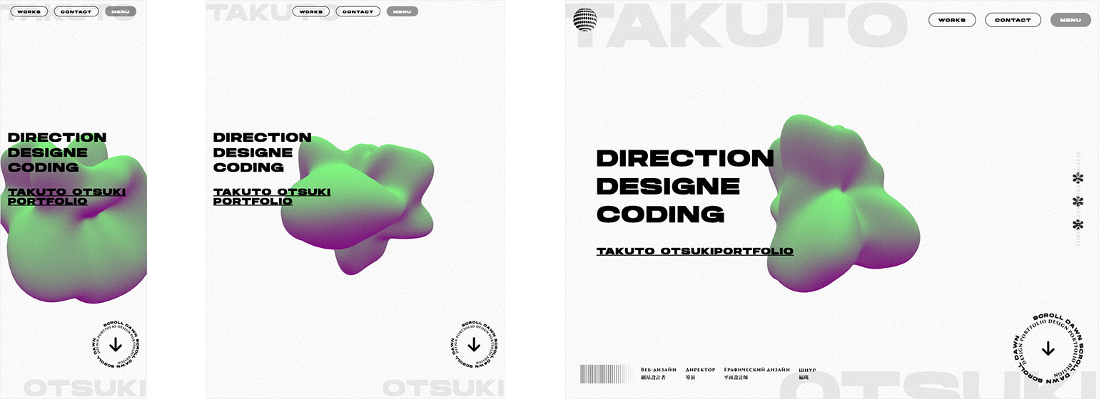 昨年まで使用していたポートフォリオサイト。 WebGLを使用して動きのあるアブストラクなオブジェクトの表現に取り組みました。